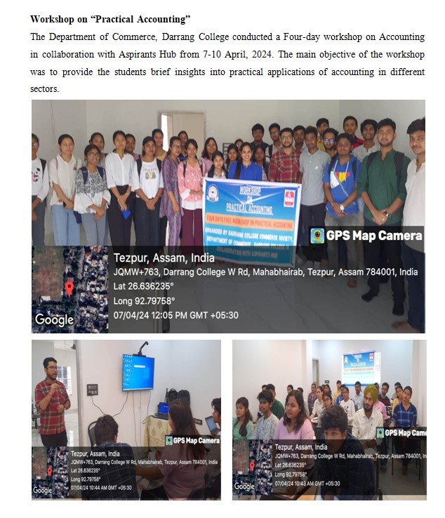 | 387 | Department of Commerce, Darrang College conducted a Four-day workshop on Accounting in collaboration with Aspirants-The Coaching Hub from 7th April to 10th April, 2024 | 2024-04-07 | View File |