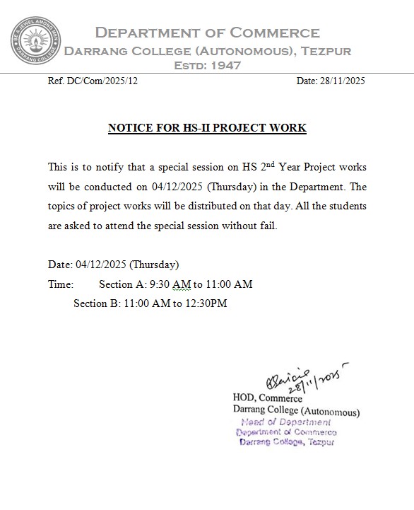| 43 | Career Counseling Program: Employability Skills & Scopes of Management Education organised by the Department of Commerce and Darrang College Commerce Society in collaboration with Assured Educations & EIILM, Kolkata on 3rd March 2023. | 2023-03-02 | View File |